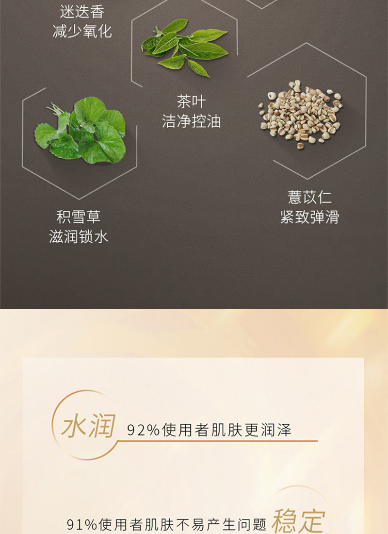 • 功效:美白 补水 保湿 抗衰 修护 深层清洁 提亮肤色 提拉 紧致 锁水 去黑头 抗敏 舒缓 控油 滋养 淡斑 收缩毛孔 隔离 防晒 嫩肤