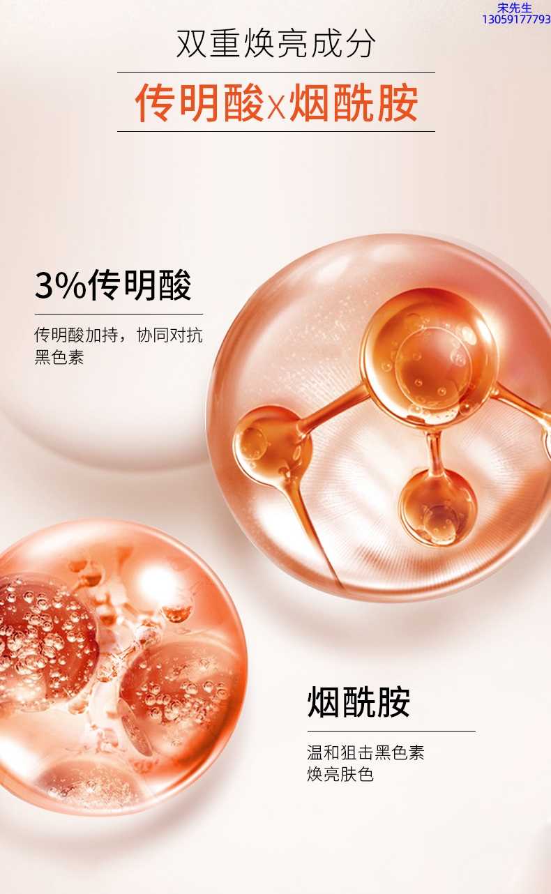紫外线会激发酪氨酸酶,使黑色素蛋白数量增加,肤色持续加深。传明酸能防止晒后肌肤色素沉淀,无刺激、光敏感度低。